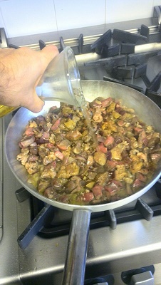 Quando la carne risulterà ben cotta , dopo che il vino si sarà asciugato, aggiungere sale e pepe. Servire ben calda