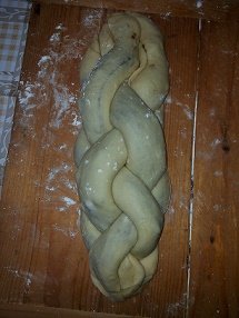 Il dolce di oggi è un po’ elaborato, però vale la pena assaggiarlo. Si tratta di una specie di brioche saporita a forma di treccione. Non stucchevole, realizzata da Daniela. Si mangia nell’Europa dell’Est, durante i giorni di festa.