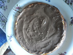 Lasciarla raffreddare e deporla in frigo per un paio d’ore. Prima di servire sciogliere la cioccolata a bagnomaria e ricoprire la torta.