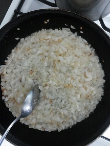 Tagliare e soffriggere le cipolle con un filo di olio