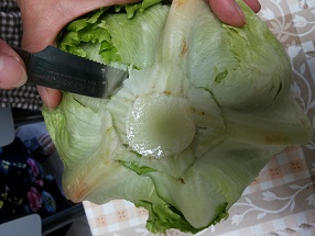 Tagliare a forma di cilindro la parte bassa dell’insalata