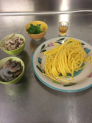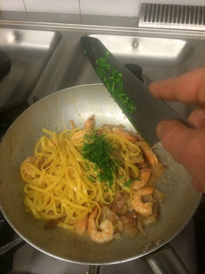 Giovedì cucina Simone: Fettuccine con gamberi e guanciale