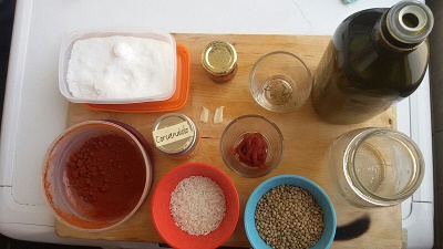 il resto degli ingredienti deve essere di eguale quantità, stando attenti a non esagerare con sale, peperoncino ed aglio che andranno a costituire l’ultimo 10%.