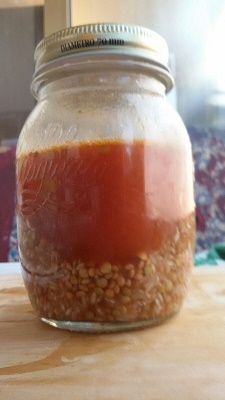 Disporre tutti gli ingredienti nel barattolo con l’aggiunta di quantità di acqua che ricopra il tutto