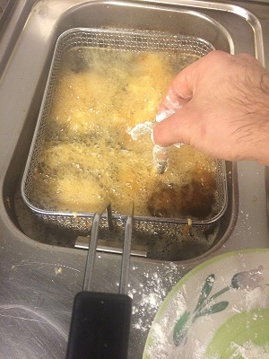 Infarinare quanto basta ed in modo veloce altrimenti il contatto con la farina renderà la frittura gommosa