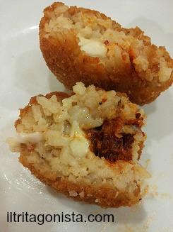 Cucinare il riso come se si trattasse di un risotto. Versatelo sul tegame ed aggiungete l’acqua calda a poco, a poco. Nel frattempo, arrivati alla giusta cottura, per cui al dente, spolverate con il formaggio, sale e pepe. Lasciarlo raffreddare. Unire le uova, impastare ed iniziare a creare gli arancini per poi riempirli con la provola e la ‘nduja, passarli sul pan grattato. Friggere.