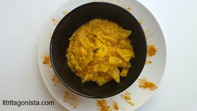 Continuano i suggerimenti dello chef Luca per creare piatti saporiti ed economici con pochi ingredienti. Basta un po’ di fantasia. Pietanza perfetta per ogni stagione, va bene anche servita fredda. Presenti tre sentori della curcuma: acido, dolce e amaro. La base la patata. Il piatto nella sua semplicità è armonioso e molto soddisfacente.
