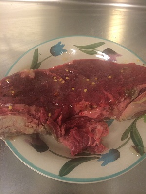 Insaporire la carne col composto di miele e peperoncino per 30 minuti.