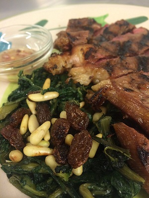 Giovedì cucina Simone: Tagliata di manzo al miele piccante con cicoria, pinoli e uvetta