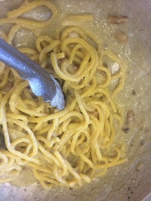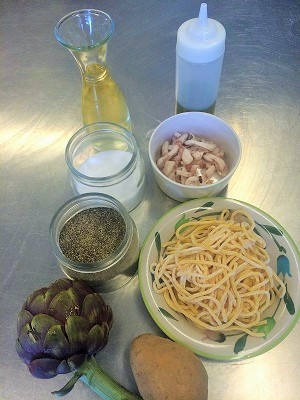 Giovedì cucina Simone:Tonnarelli con crema di carciofi e guanciale croccante