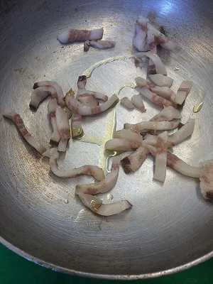 Dorare il guanciale in padella.