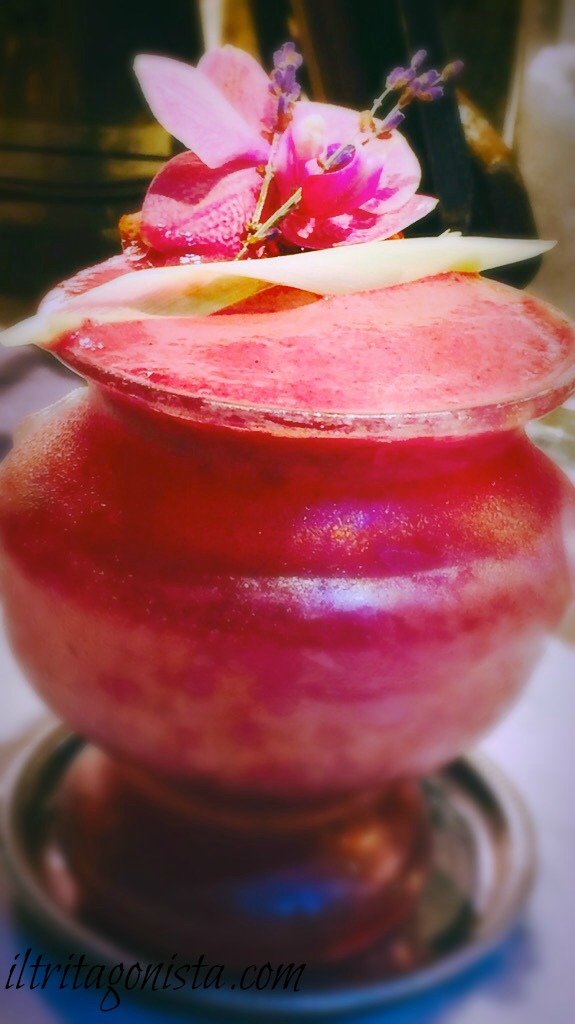 Per “Il Tritagonista” oggi proponiamo un drink complesso a base di gin, succhi freschi e una spuma alcolica ai lamponi.
