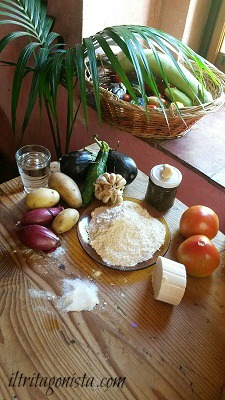 Tagliare a listarelle sottili i pomodori, le patate, le melanzane e le zucchine. Incorporare in padella e cuocere lentamente aggiungendo acqua (se necessario e tanto peperoncino!!!
