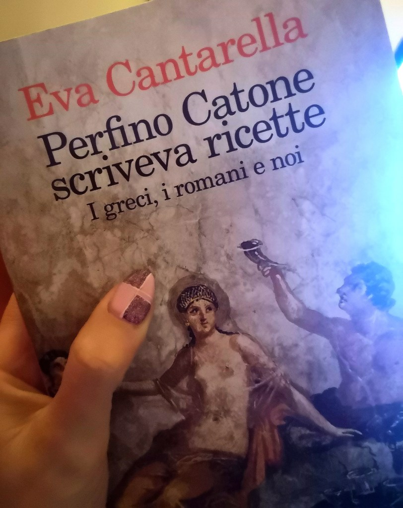 Poliedrica la personalità di Eva Cantarella, scrittrice, storica, sociologa… Figlia di cotanto padre dal quale ha ereditato il talento e l’abilità di scrittura. Numerosi i libri da lei pubblicati, la maggior parte dei quali ha come sfondo l’età classica. Perfino Catone scriveva ricette è un saggio di poco più di 200 pagine edito da Feltrinelli nel 2017. Dal titolo potrebbe sembrare un ricettario che racchiude le prelibatezze di Apicio o Plinio il Vecchio… No. È un viaggio nell’antichità attraverso aneddoti, storie, personaggi che portano indietro nel campo e rammentano le nostre radici di tempi lontani ma tanto preziosi. Superstizioni, usanze, sesso, donne, animali noti, luoghi mitici. Tutto nutre il corpo e la mente… Mens sana in corpore sano insomma. Un testo che bacia chi lo accarezza, un savium dato e ricevuto con libidine. Somiglianze moderne con Lucrezia, Clitemnestra, Medea…Alcune delle donne protagoniste… Per questo motivo è giusto brindare per loro… Ricordando che sono sempre delle signore, per cui: “Bene dominae”… Perché felice è la casa che ospita un amico (Ralph Waldo Emerson).