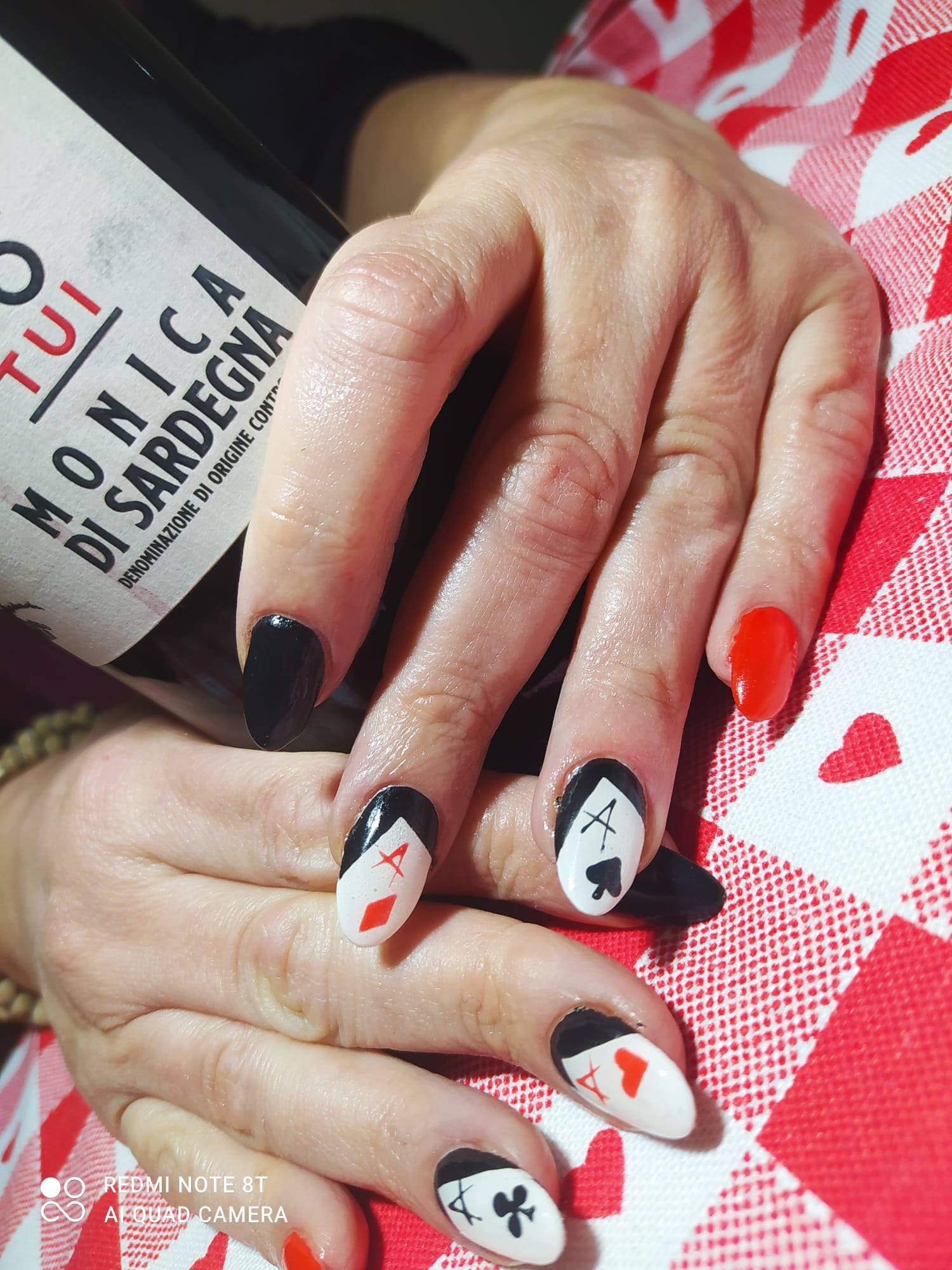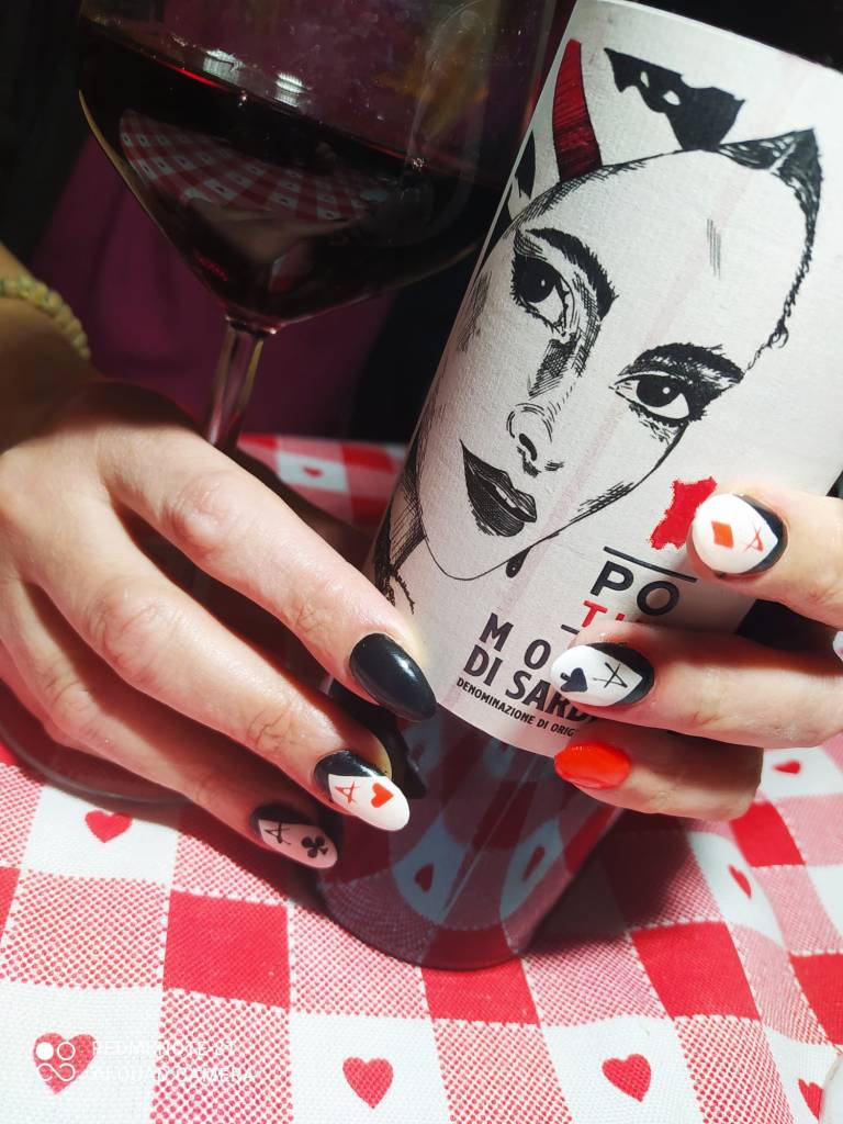 “ Po tui sa matta chi creìa siccada hat torrau a bogai froris e folla” (per te la pianta che credevo secca ha rigermogliato fiori e frutti) . Questi i versi che ispirano Silvio Carta per l’omaggio al gentil sesso… Poi Tu, Monica in purezza. Vitigno dal nome femminile, considerato autoctono della Sardegna, per alcuni di origine spagnola. L’etimologia deriva dall’accadico munehhu (che rende docile, quieto). Secondo un’antica tradizione, il nome condiziona il destino della persona così chi sorseggia Monica prova una sensazione di benessere, piacere. L’annata 2018 indossa un rosso rubino compatto, necessita di un po’ di tempo per lasciarsi svelare. Trasparenze accarezzano un corpo longilineo, per un profumo che rammenta i piccoli frutti di bosco, la ciliegia, la succosità dei mirtilli su un tappeto di pepe nero, coriandolo, curcuma, sbuffi di lentischio. Sorso equilibrato, la sua accennata rusticità si trasforma in eleganza specialmente se respira o con l’abbinamento al cibo. Compagno fedele di un intero pasto, regge anche qualche delizioso dessert secco a base di amarene o un cioccolatino prelibato. L’etichetta gioca sulla purezza del bianco, l’idea della fine con il nero, echeggiante il mistero; la passionalità, l’amore, l’energia del rosso… Colori protagonisti delle carte da gioco con le quali Elio, figlio di Silvio, si confronta spesso… Per la coincidenza del cognome, per il guizzo che lo contraddistingue, per il gioco della roulette… Un po’ per Le Rouge et le Noir di Stendhal … Perché le sue bottiglie sono tutte un romanzo.