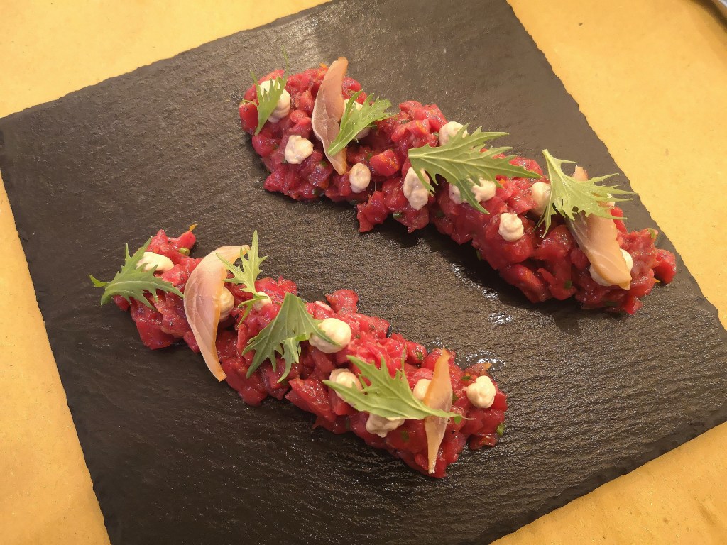 L’Italia è presente in tutte le sue sfumature: bianche, rosate, rosse e frizzanti. Calici avvincenti per niente banali. Etichette scelte con cura di cantine non commerciali, impossibile trovarle nei supermercati. Aldo Rainoldi dalla Valtellina, Sergio Arcuri dalla Calabria, Poderi Mattioli dalle Marche, numerose bollicine, molte delle quali francesi, sono solo alcuni esempi della diversità. Un vero e proprio murales del vino che però si guarda, si annusa e si sorseggia. Nonostante ci sia abbondanza è possibile scegliere con calma e tranquillità. Per chi decide di sostare è permesso gustare una cucina a freddo. Taglieri di salumi e formaggi, crudi di pesce, battuti di carne, i prodotti biologici sono alla base di pasti appetitosi. Non si tratta solo di accompagnare il calice, ma di restare accanto a lui come un partner ideale. Le carote si trasformano in spaghetti, la frutta diventa più succulenta, i latticini base di piatti sfiziosi, le ostriche amanti dello sparkling. La banalità non è presente grazie al menu del talentuoso chef Giovanni Oliveri coadiuvato da Giovanni De Angelis, maestro della cucina. Coppiere dei fortunati clienti è il sardo Marco.