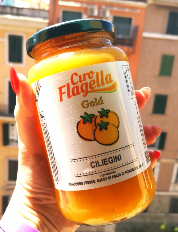 Ciro Flagella – Rosso da amare nasce a Castel di Sangro (L’Aquila) da un’azienda a gestione familiare che ha come protagonisti Franco, Teresa e Sonia. Salse, pelati diventano colori appaganti e saporiti dalle sfumature saporite. Sebbene il pomodoro sia originario del Sud America in Italia appare aver trovato un habitat ideale… In alcune aree, ancor più di altre. Franco accarezza i pomodori trasformandoli in modelle bionde e rosse, dalle quali trae il meglio. Appena si apre il prodotto sensazioni piacevoli colpiscono l’olfatto tanto da indurre il fortunato avventore ad assaggiare il contenuto affondando il dito in modo sensuale… Provare per credere.