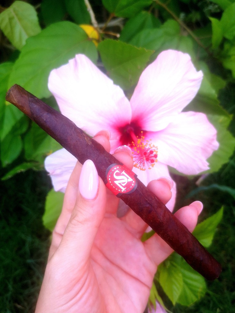Il colore scuro rievoca il momento nel quale il Sommo Poeta lascia l’Inferno e giunge nel Purgatorio per detergere lo spirito, con anche il volto sporco di fuliggine. Si avverte quasi un’entrata in chiesa. Il sigaro emana aromi di incenso. Come quando la rugiada bagna il prato, un profumo di humus stuzzica le narici. Dante, in segno di umiltà, si lascia cingere da Virgilio dal giunco, così il sigaro è cinto da una fascia preziosa, quasi sanguigna.