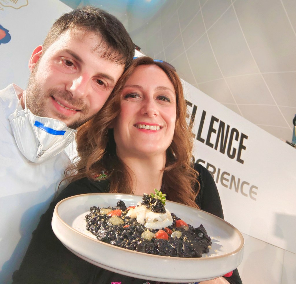 Tra gli artisti da segnalare un giovane Antonio Madonna, re dei fornelli di Aqua Lexus Fish Restaurant … Nato a Vico Equense, alunno del padre di Antonino Cannavacciuolo, si destreggia perfettamente tra pietanze salate anche con qualche dessert particolare. La sua ricetta? Carnaroli Acquerello al nero di seppia con bottarga e Caviar Giaveri. Pietanza complessa per la presenza di ingredienti forti, in apparenza contrastanti, dal gusto deciso e terribilmente affascinante…
