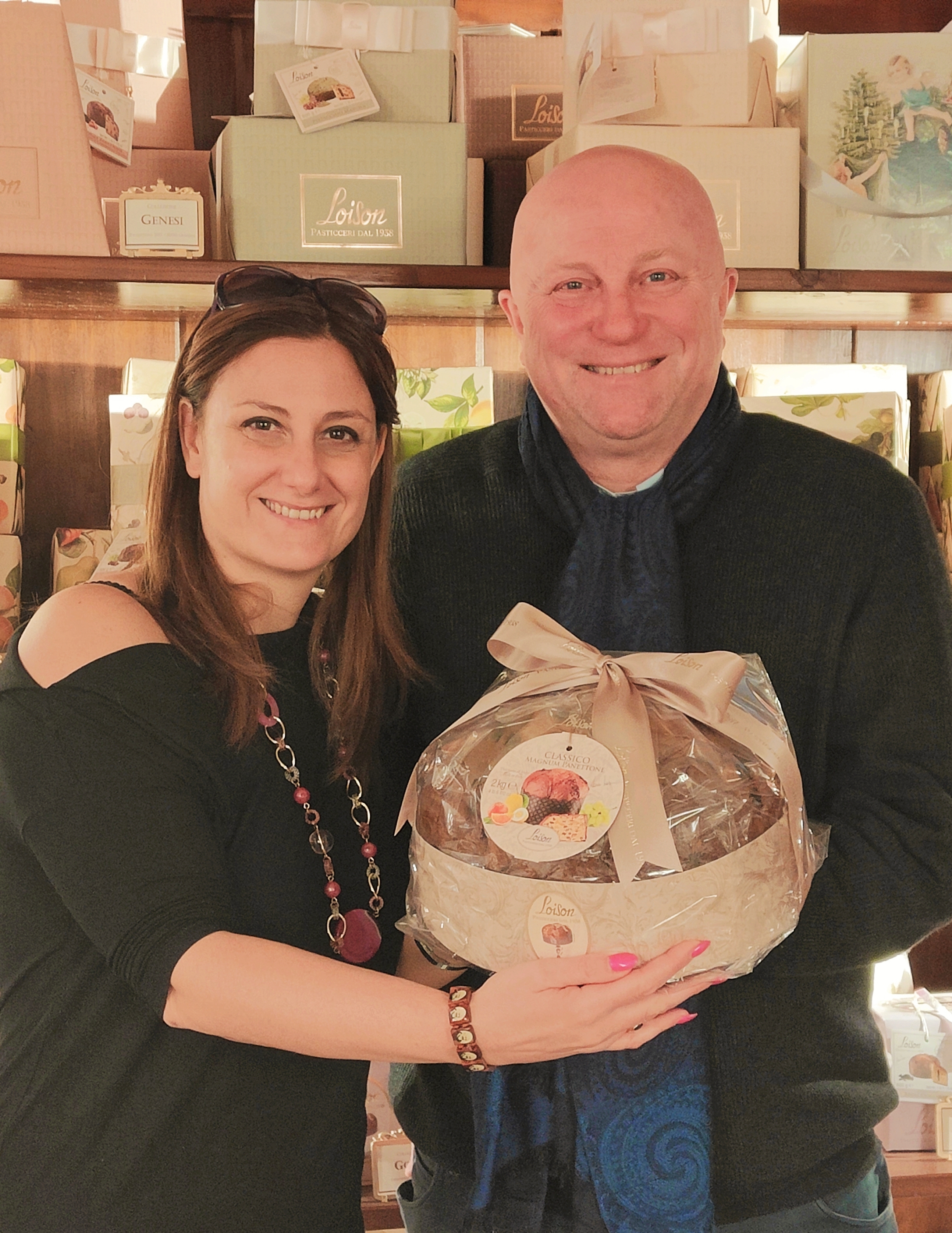 … Quella che fa tornare indietro nel tempo, che riapre le finestre dell’anima, che vagheggia i ricordi infantili e fa tornare bambini. LOISON non è solo il Natale, è la coccola compagna di un intero anno attraverso la Sbrisolona, apprezzata da Eleonora Gonzaga; la Tosa ricalca la nota locandiera Mirandolina, aspetto croccante e cuore caldo; la Bonissima si ispira a una ricca dama che avrebbe aiutato il popolo in un periodo di carestia. I filoni all’uva, al mandarino, pere e spezie sono carezze quotidiane, fruibili dunque in qualsiasi momento della giornata. Ma l’Estro di Sonia è tangibile anche in oggetti di uso quotidiano, eleganti graffette o fazzoletti testimoni di un reale talento. Quale è Edoardo, frutto del loro amore. Giovane sensibile e competente, certamente porterà avanti la quarta generazione dei pasticceri Loison.