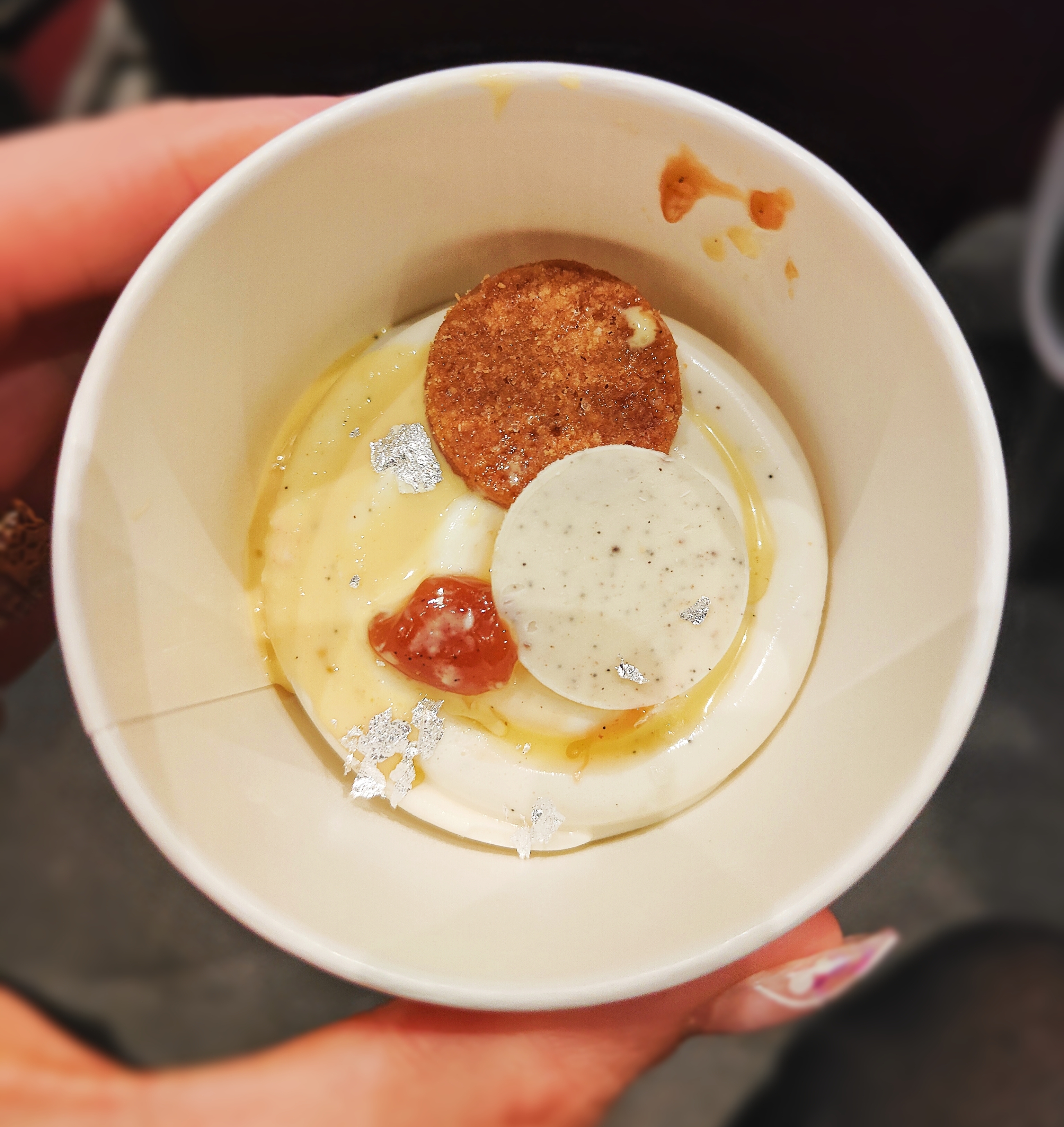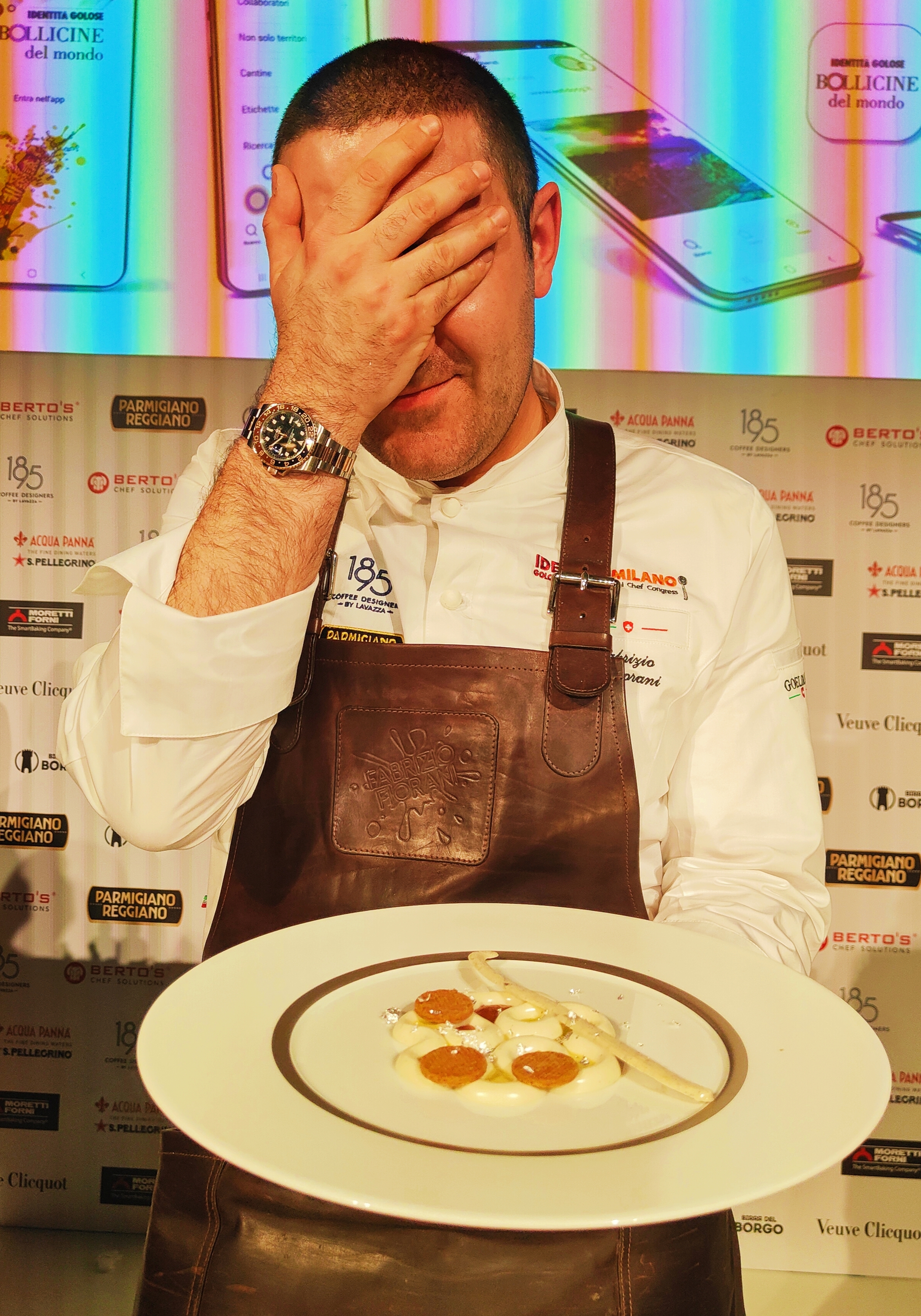 Ad attirare l’attenzione della platea è Fabrizio Fiorani noto per il motto: “Bello, buono e replicabile” aggettivi sui quali ha creato la carriera. L’occhio vuole la sua parte perché colpito nell’immediatezza; il palato desidera l’appagamento e la qualità deve perdurare nel tempo in modo da accontentare tutti nella medesima maniera. Dal florido curriculum ha una spiccata sensibilità, empatico, è una spugna, trae spunto da ciò che vede e rendendolo proprio. In continuo movimento apprezza la diversità facendola diventare normalità. Cerca di stupire l’avventore in modo intelligente. Superflua la descrizione del suo gelato soft alla vaniglia, perché da vivere. Ingredienti, in apparenza disparati, trovano il piacere poligamico con olio di olive taggiasche, caramello e foglie argentate. Policrome texture si abbracciano in una nuance dalla grazia nipponica.