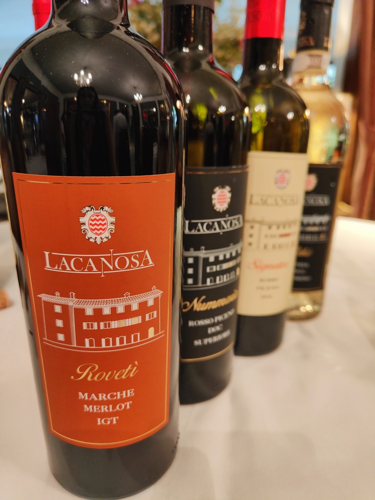 La Passerina, metodo Charmat, spumante Brut 2021 dalle nuance paglierino è un buon aperitivo per bevibilità, freschezza, bouquet estroverso mai invasivo, perfetta per un incontro tra amici che desiderano condividere una seconda bottiglia. Dalla personalità più spiccata Pekò 2021 (Pecorino 100%) dai riflessi smeraldini che richiamano la misticanza, gli spazi aperti, il respiro della terra, un sorso green in tutti i sensi: mette il buon umore. Signator 2018 (Montepulciano 50% e Sangiovese 50%) dal nome “legale” e regale, dagli archetti purpurei e sinuosi è un assaggio che induce alla rivelazione di piccoli segreti. Ciliegia, pepe nero, prugna, sbuffi di vaniglia solleticano le narici per concedere un assaggio piacevole e vivace. Tannini laccati lasciano il palato piacevolmente nitido. Il finale richiama la frutta a bacca rossa. Rovetì (Merlot 100%) 2016 è una bella donna che indossa guanti vellutati e decide lei stessa da chi lasciarli sfilare. Un profumo intenso di ribes, uva spina, more, gelso su polvere di cioccolato e rosa rossa, non delude. Corrispondenza tra naso e bocca dal finale di amarena. Nummaria 2017 (Montepulciano 70%, Sangiovese 25%, Cabernet Sauvignon 5%) è un fuoriclasse. Un rosso rubino intenso invita all’assaggio. Coriandolo, chiodi di garofano, polvere di caffè, scatola di tabacco sono alcuni sentori di un sorso ampio, coinvolgente che testimonia l’attenzione che la cantina pone a tutte le sue creature. L’assaggio è sensuale, carnoso, voluttuoso. Abbinabile alla selvaggina, ai tortelli ripieni ma se gustato come unico protagonista è ancora più memorabile.