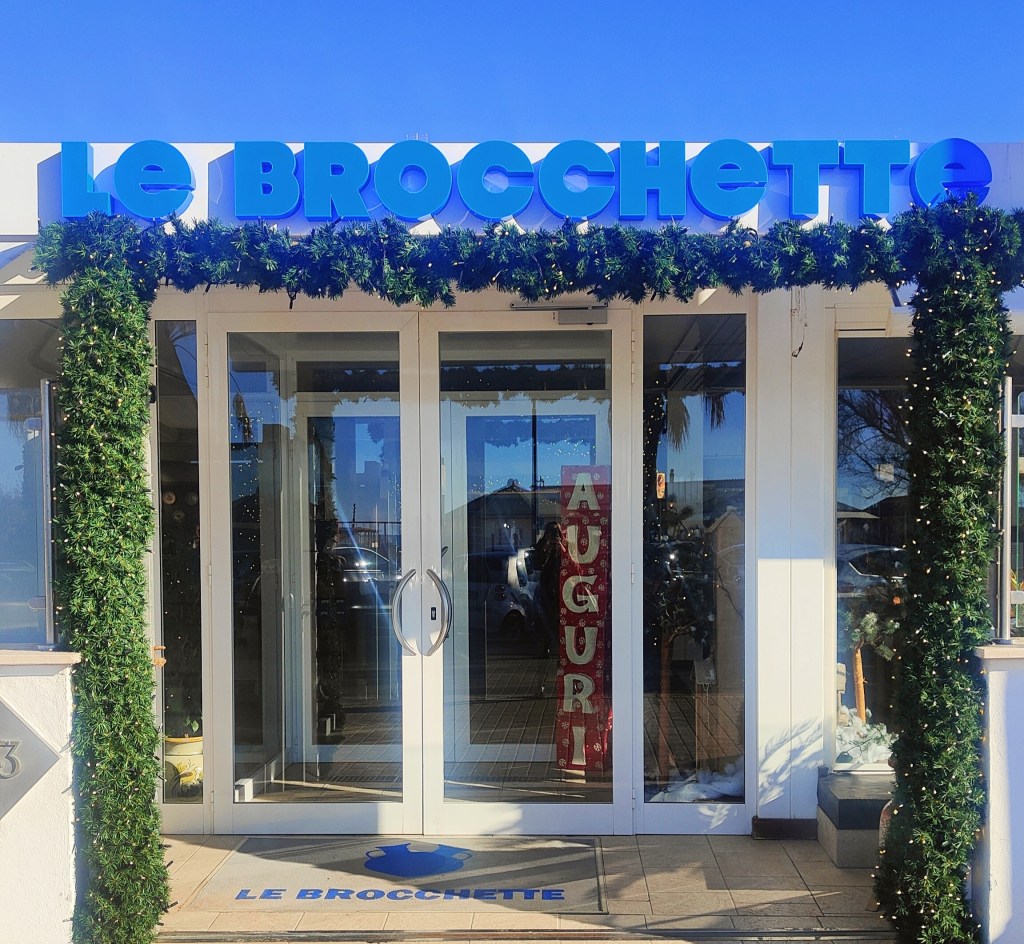 Tra la carrellata di realtà ubicate sul lungomare esiste l’hosteria di mare di Carmine Carli: Le Brocchette. Location nella quale è possibile assaporare il pesce fresco del luogo. Il menu è sempre in evoluzione. Tra le pietanze spiccano lo Spaghetto alle vongole, il Calamaro ripieno, le Polpette di pesce, ben asciutta la Frittura di pesce, diverse qualità di caviale, il Tiramisù è superbo come pochi: fresco, cremoso, equilibrato. Le pietanze sfilano in modo semplice ed elegante. Variegata la lista dei vini con una buona proposta di Champagne e di bottiglie estere provenienti dal Cile, la Spagna, il Sudafrica. Si tratta di uno spazio chiuso in inverno, all’aperto durante la bella stagione nel quale si è baciati dal sole, sfiorati dal mare, coccolati dal servizio, abbeverati dai nettari e allietati dai sapori. Carmine è un ottimo padrone di casa, affabile, premuroso, predisposto al dialogo e al confronto che si dedica alla sua realtà come se fosse una donna da corteggiare e amare…