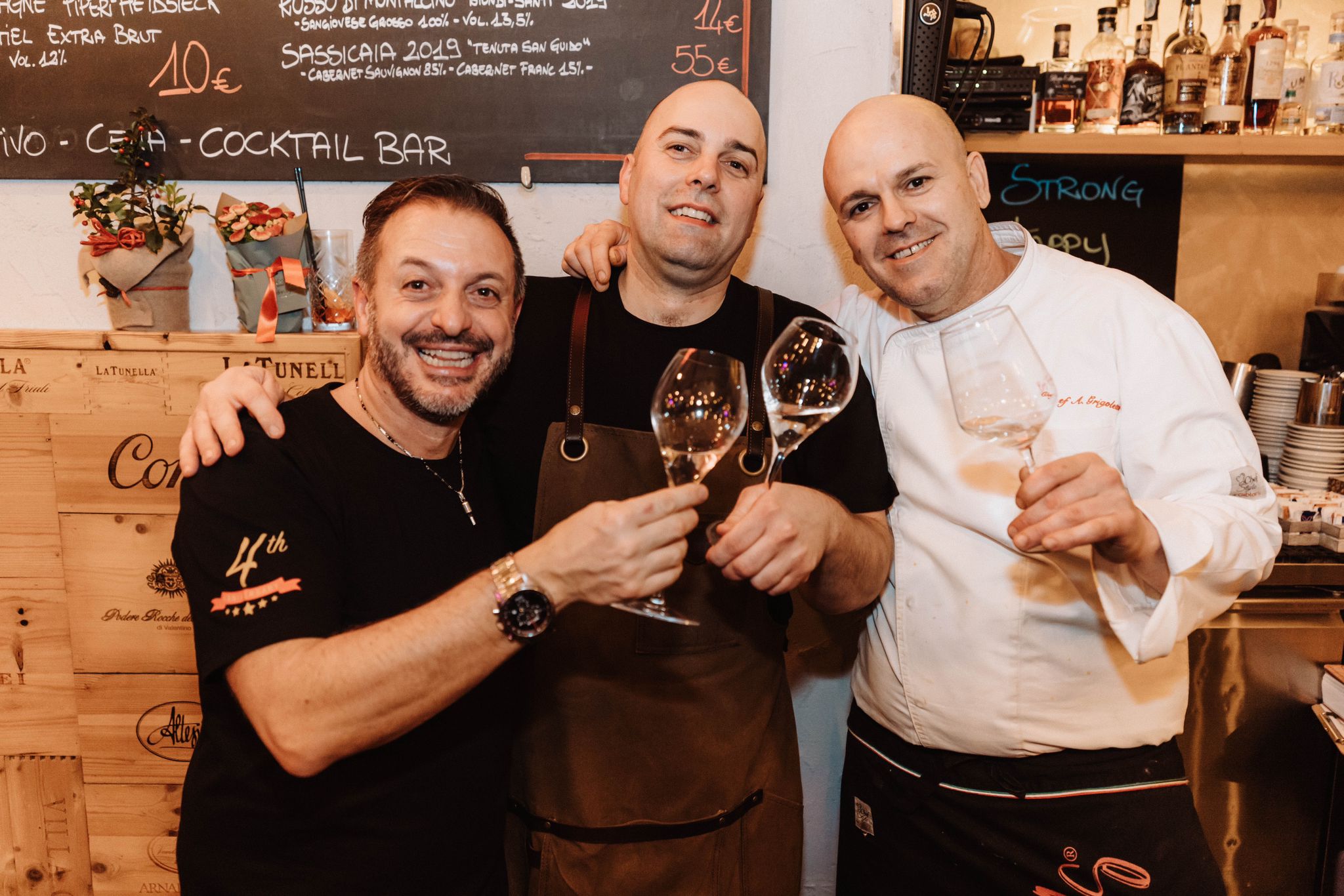 Il quattro è il numero della concretezza, della solidità, della logica, della costruttività… Così sono quattro le candeline soffiate lo scorso 23 gennaio presso la realtà capitolina di via Elvia Recina, 24: Big Friends Rome festeggia traguardi e successi. Lo chef Antonio Grigoletto e il barman Luky Lucian hanno celebrato con tutta la fantastica squadra un compleanno assieme agli amici più fedeli, ai clienti più affezionati e soprattutto hanno devoluto l’intera cifra della serata alla onlus Vivere la gioia, oltre 2500 euro. Un numero simbolo di due giovani che sono riusciti a costruire una solida realtà attraverso sacrifici, professionalità, conoscenza della materia prima, passione. Giovani talenti capaci di inventarsi, sempre in evoluzione, in movimento anche nei momenti più difficili. Big Friends Rome è aperto tutta la settimana, mattina e sera, il menu segue la stagione ed è variegato. Antonio resta una delle certezze della Capitale, capace, umile, incline alla fatica. Destreggia i fornelli come pochi. Luky Lucian possiede un buon naso e un buon palato, le sue mani sfiorano gli attrezzi da lavoro come strumenti musicali che si annusano e si assaggiano attraverso bicchieri colorati e stuzzicanti che regalano melodie edibili…