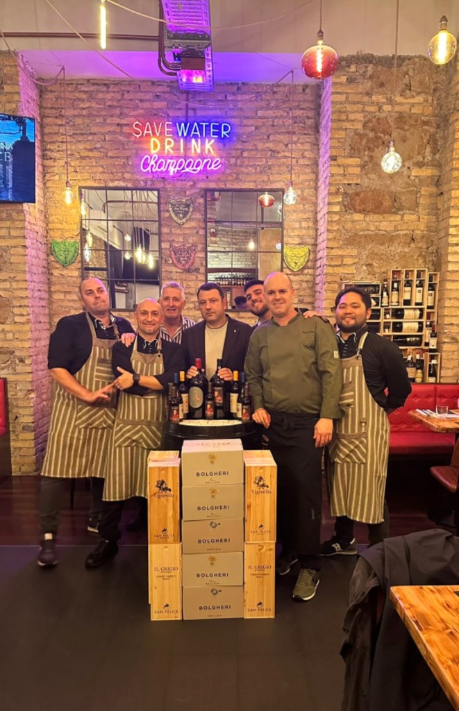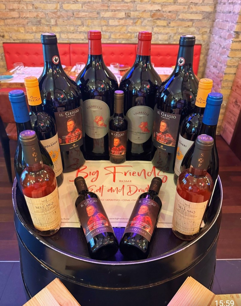 Con l’aggettivo latino felix, anticamente, non si intendeva felice, come oggi, ma fortunato. Alla dea Fortuna, Servio Tullio, al quale è attribuito il culto, dedica ben ventisei templi nella Capitale. Così esiste anche la società agricola San Felice a Castelnuovo Berardenga (Siena). Luogo davvero fortunato! Baciato dal sole, accarezzato dal vento, ubicato in una delle regioni più visitate dai turisti, immerso nel verde e soprattutto arioso. Sembra di vivere in un’altra dimensione. Qui i nettari si distinguono per carattere ed eleganza. Big Friends Rome realizza una serata scegliendoli come protagonisti. Così lo chef padovano Antonio Grigoletto crea un menu che ispira proprio come Giosuè Carducci quando vede e descrive i cipressi di Bolgheri alti e schietti. La Bruschetta al pomodoro e semi misti con crema di zucca mantovana, salvia e amaretti dall’infinita morbidezza bacia Bell’Aja Bolgheri bianco 2023 (Vermentino 100%). Il sorso paglierino dai sentori di mela Golden, lime, time, menta su note minerali è diretto e beverino. Finisce in un istante. La Battuta di manzo (Sakura Yoza) con tartufo nero e il Tomino alla griglia con crema di castagne e riduzione di Bolgheri, nella sua squisitezza, esalta le capacità di abbinamento di Bell’Aja Bolgheri rosso Doc 2022 (Cabernet Sauvignon 100%). Rosso rubino dall’unghia più sensuale sprigiona sentori di ciliegia, pepe nero su note balsamiche e smaltate. L’assaggio è agile, il tannino laccato. La potenza del Risotto alla carbonara e stilton accarezza Il Grigio Chianti Classico Riserva DOCG 2020 (Sangiovese 100%). Rubino dai contorni granato disegna archetti consistenti. Cioccolato, orzo, ciliegia sotto spirito in bocca creano un’onda di velluto. Il Bollito di manzo con purè di broccolo romanesco e mostarda di frutta si rallegra con Vigorello Toscana IGT 2017 (Pugnitello 35%, Merlot 30%, Cabernet Sauvignon 30%, Petit Verdot 5%). Una nuance quasi compatta dalle note di prugna, scatola di sigari, smalto stuzzica naso e aggrada il palato. La torta dello chef si lascia degustare assieme al Belcaro Vinsanto del Chianti Classico Doc 2012 (Trebbiano 100%). I sapori non si sovrastano ma si abbracciano. Perfetto anche per una degustazione di formaggi.