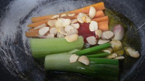 Piatto di ispirazione orientale che rappresenta la mia idea di cucina, ideato dal sottoscritto. Si tratta di brodo di pesce con pasta konjac. Speziato, fruttato e piccante con un fantastico retrogusto e profumo… Continua a leggere
